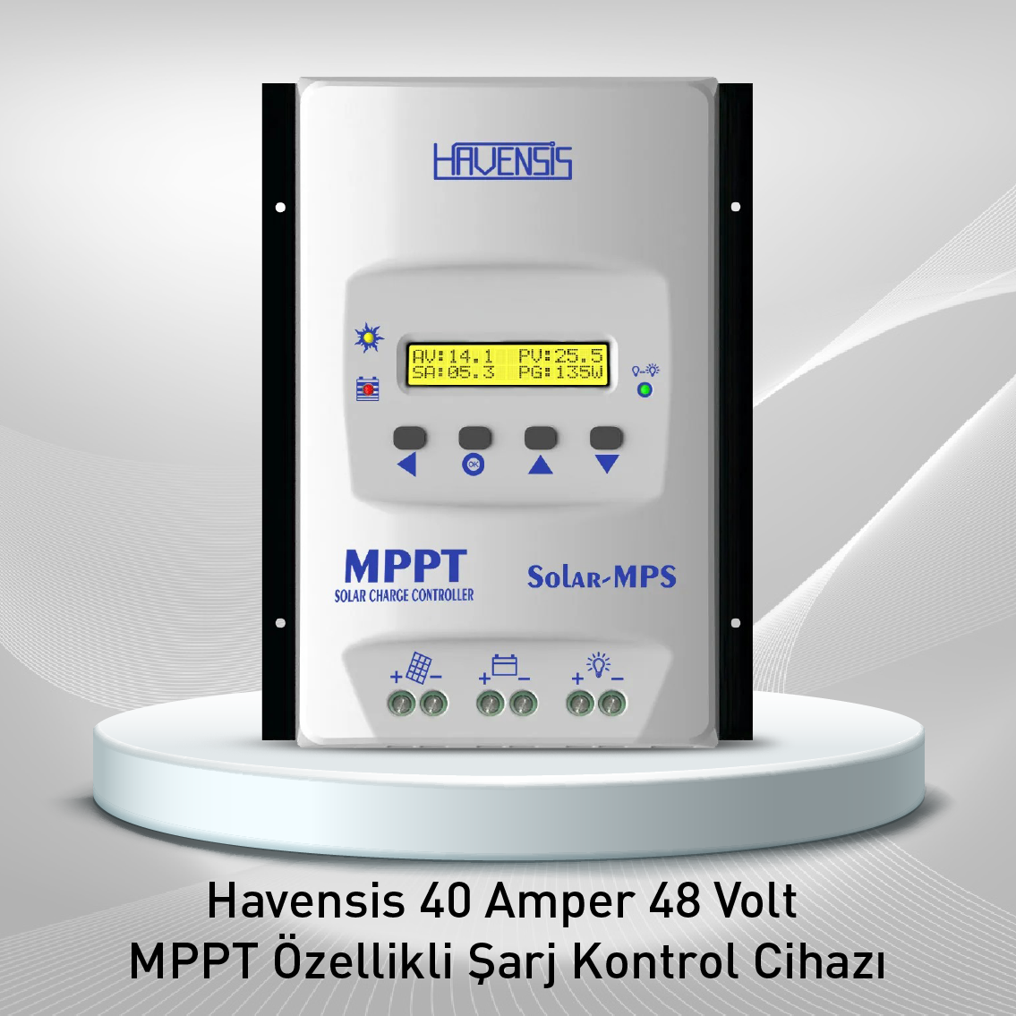 HomeÜrünlerimizŞarj Kontrol CihazıMPPT Özellikli Şarj RegülatörüHavensis 40 Amper 48 Volt MPPT Şarj Kontrol Cihazı